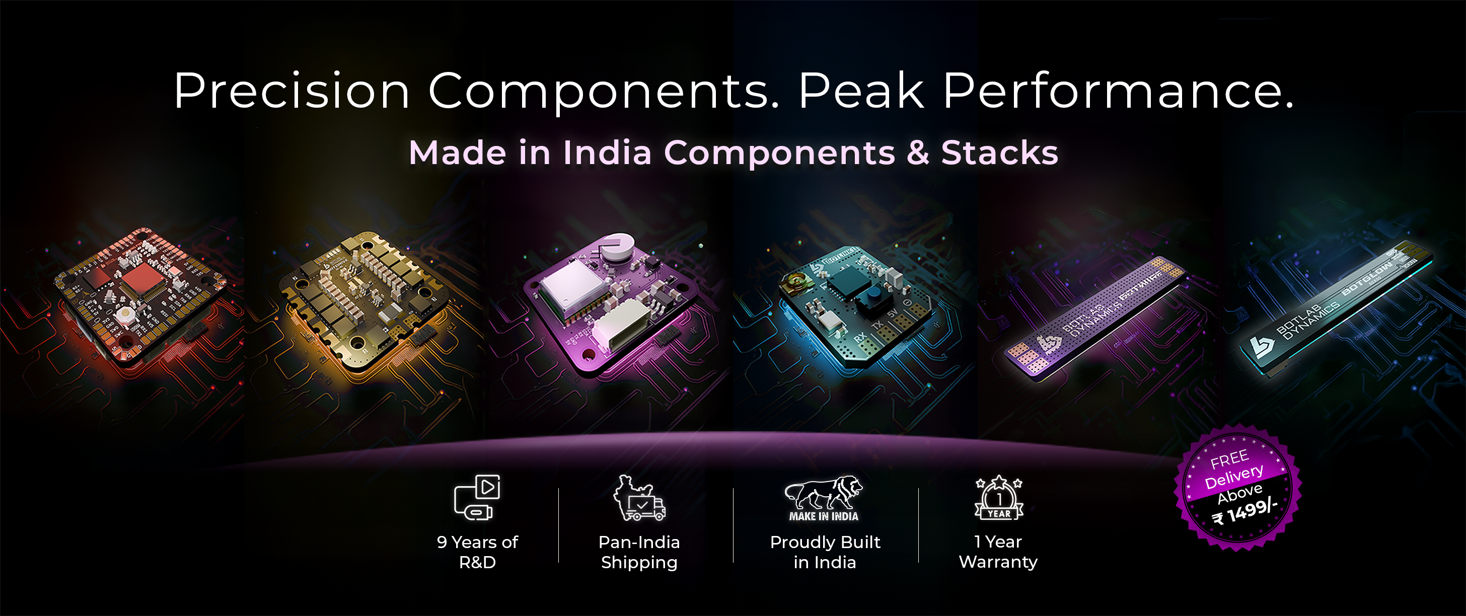 Shop Made in India drone components at the BotLab Store. Buy reliable Flight Controllers, ESCs, ELRS, GPS & more. Now with pan-India shipping!