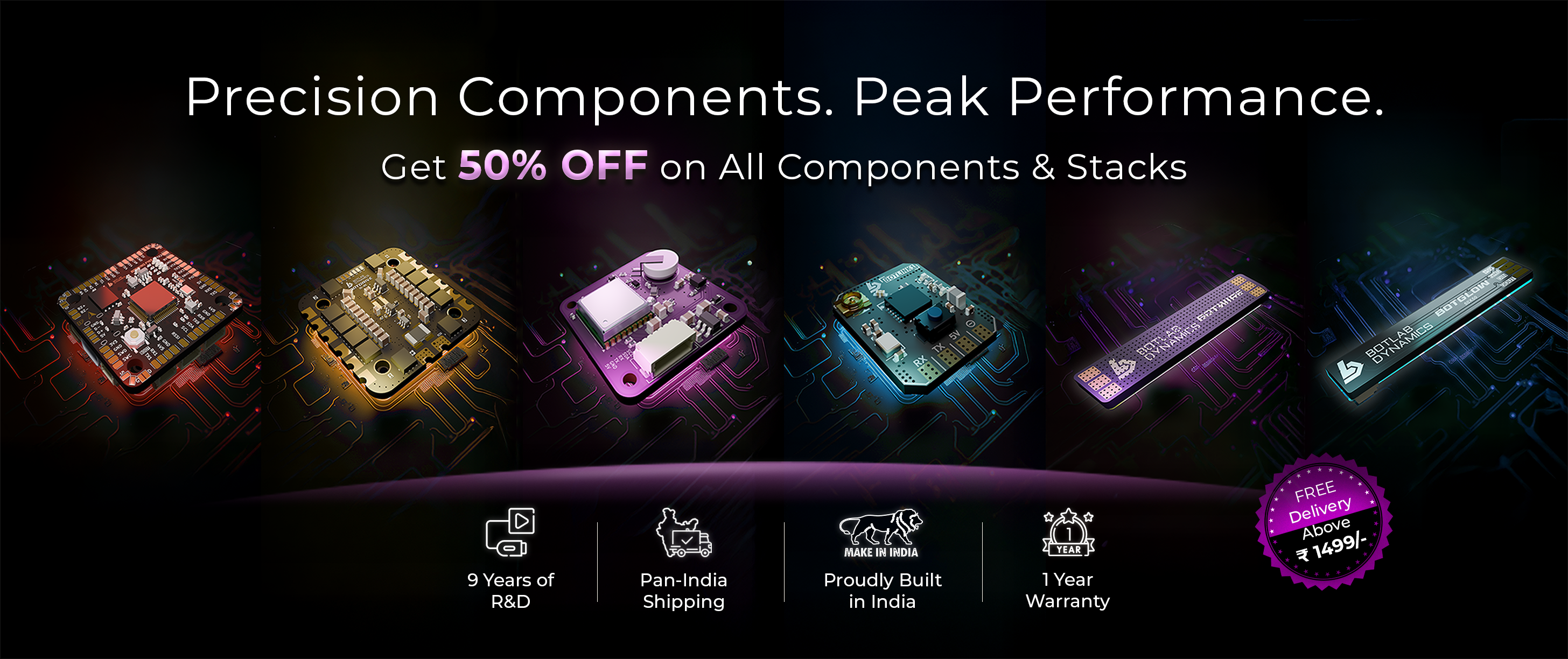Shop Made in India drone components at the BotLab Store. Buy reliable Flight Controllers, ESCs, ELRS, GPS & more. Now with pan-India shipping!