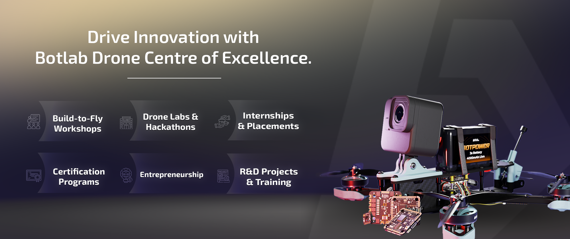 The CoE by BotLab is an ecosystem committed to building a culture of innovation, skill development, and indigenous drone technology research across the country.