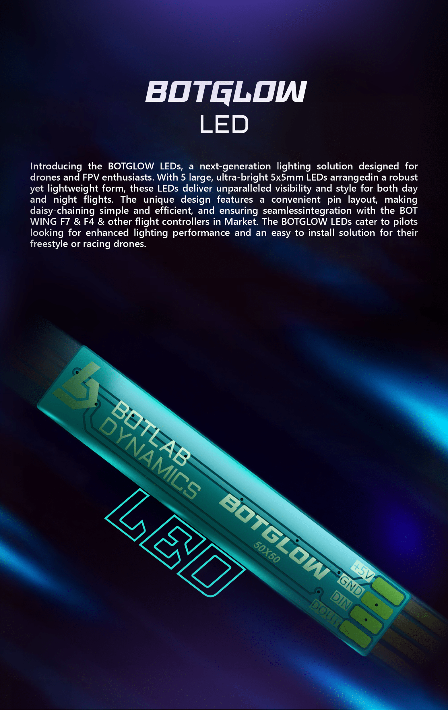 Enhance your drone's visibility and style with BotGlow Drone LED lights. Ideal for enthusiasts and pros alike, these lights offer reliable performance and a vibrant aesthetic.