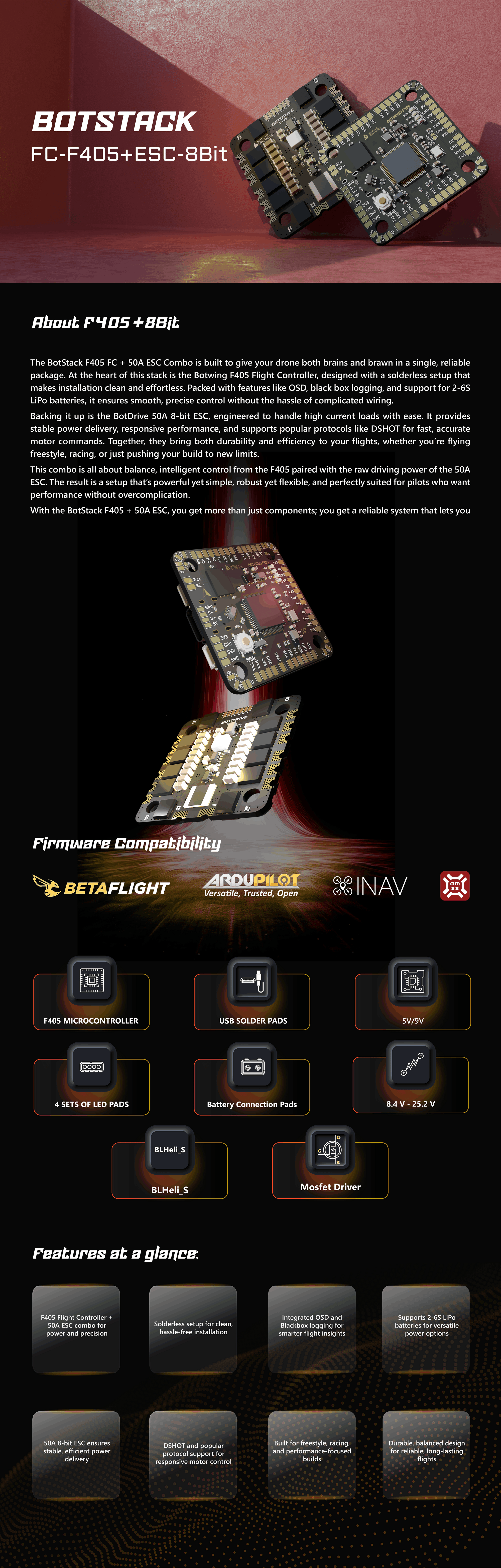 BotStack BotWing F405 FC Solderless Design and BotDrive 8-bit ESC 50 Amps